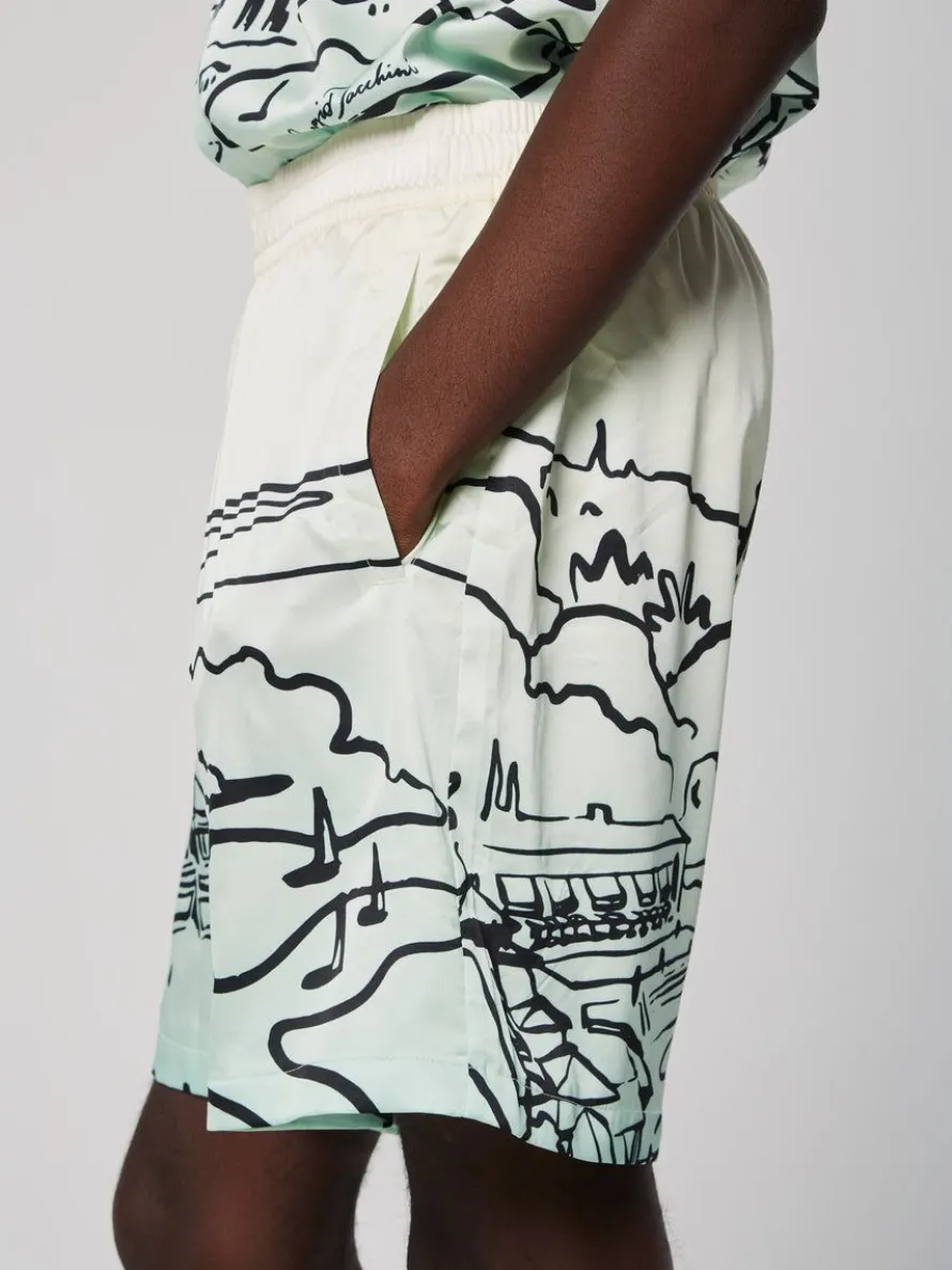 The Monte Carlo Cabana Short Is Part Of Sergio Tacchini’S Annual Monte Carlo Collection—Celebrating The Brand’S Long-Standing Partnership With Monte Carlo Country Club’S Prestigious Masters Tournament. Made Of Premium Crepe De Chine Satin, These Luxurious Cabana Shorts Feature A Gestural Ink Landscape Sketch Depicting The Tennis Club’S Picturesque Mediterranean Locale In An All-Over Print.