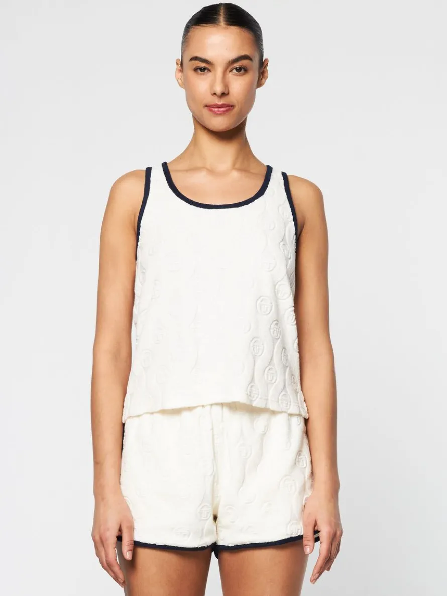 Crafted From Incredibly Soft And Absorbent Terry, Our Premium Zona Tank Features An All-Over Debossed ‘St’ Monogram Motif As A Nod To Vintage Luxury Resort Wear. Topped With Contrast Binding Accents At The Scoop Neckline And Armholes, This Elevated Tank Top Is Perfect For Working Out Or Lounging At Home.