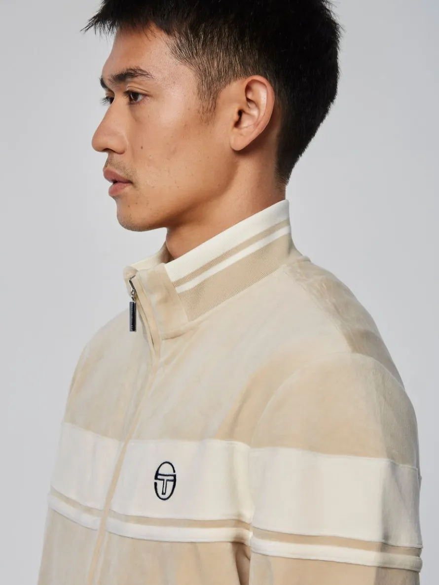 Damarindo Velour Track Jacket- Cement/ Gardenia